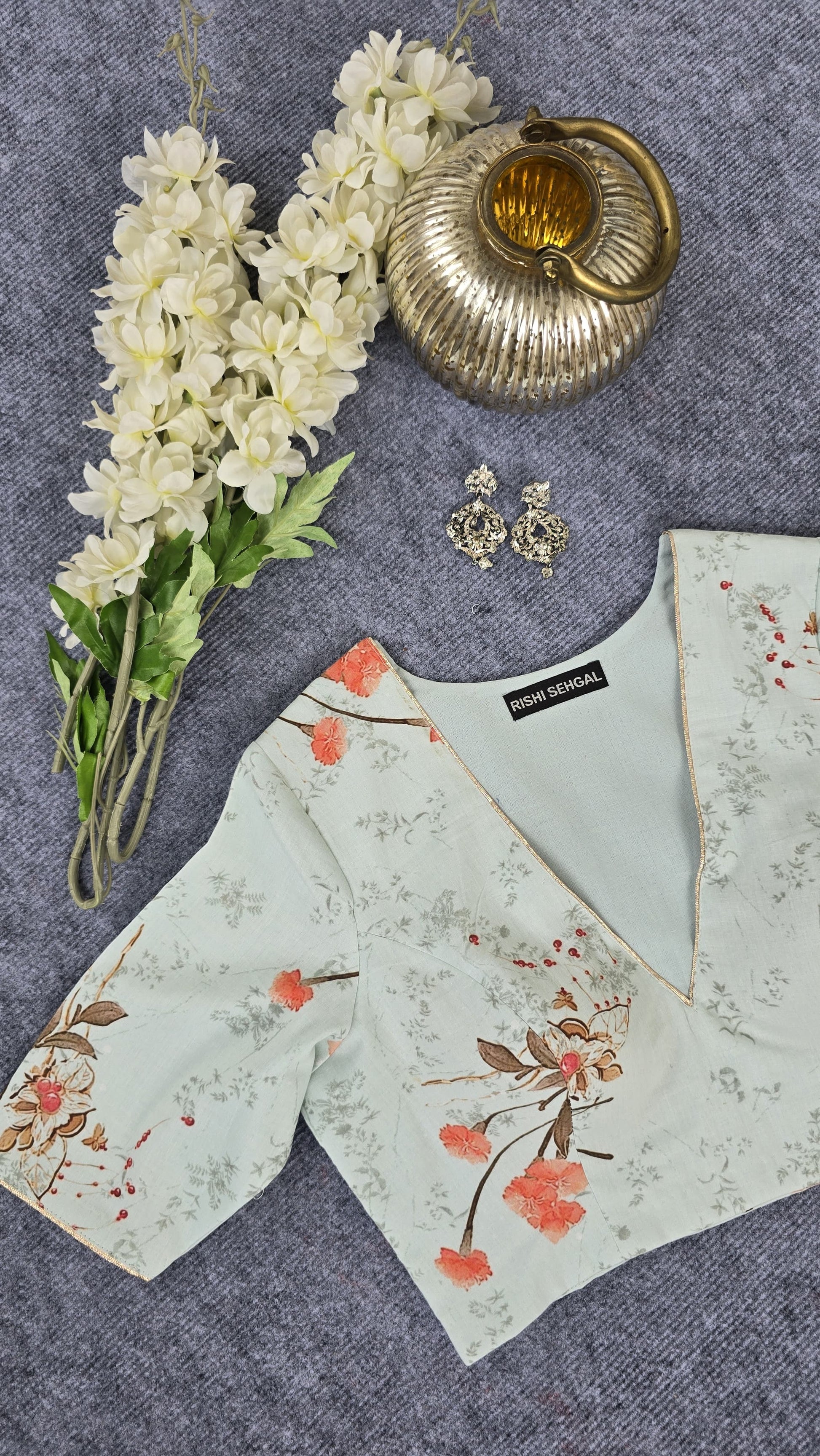 This digital print blouse is crafted from breathable cotton fabric, ensuring comfort throughout the day. Designed with padding, it offers a structured fit that enhances silhouette and support. Ideal for pairing with traditional or contemporary outfits, this blouse combines style with practicality for a refined look.