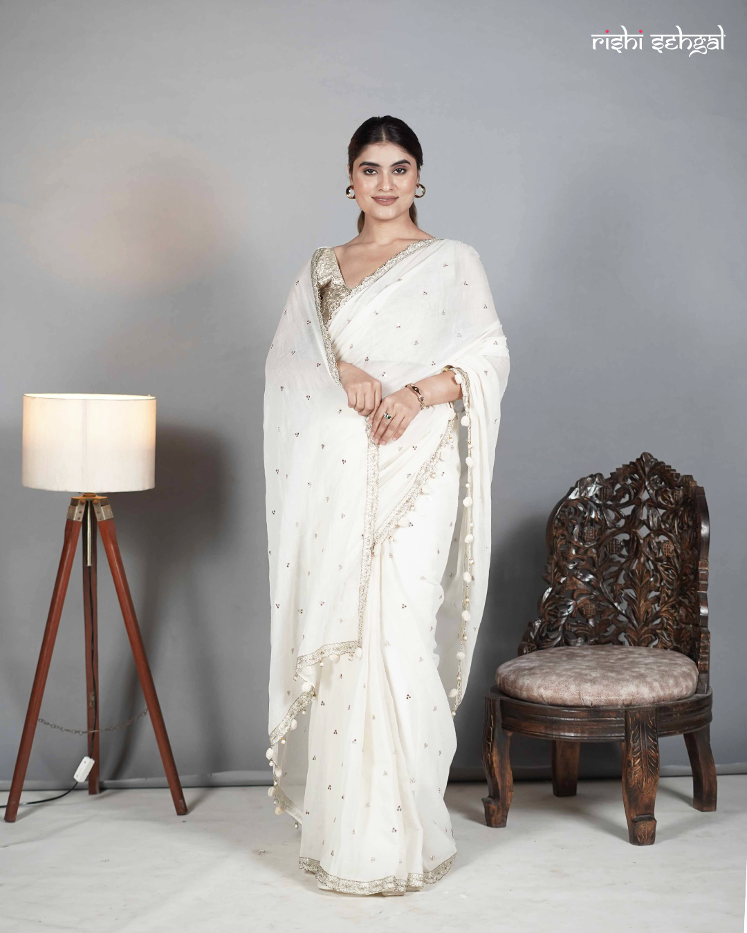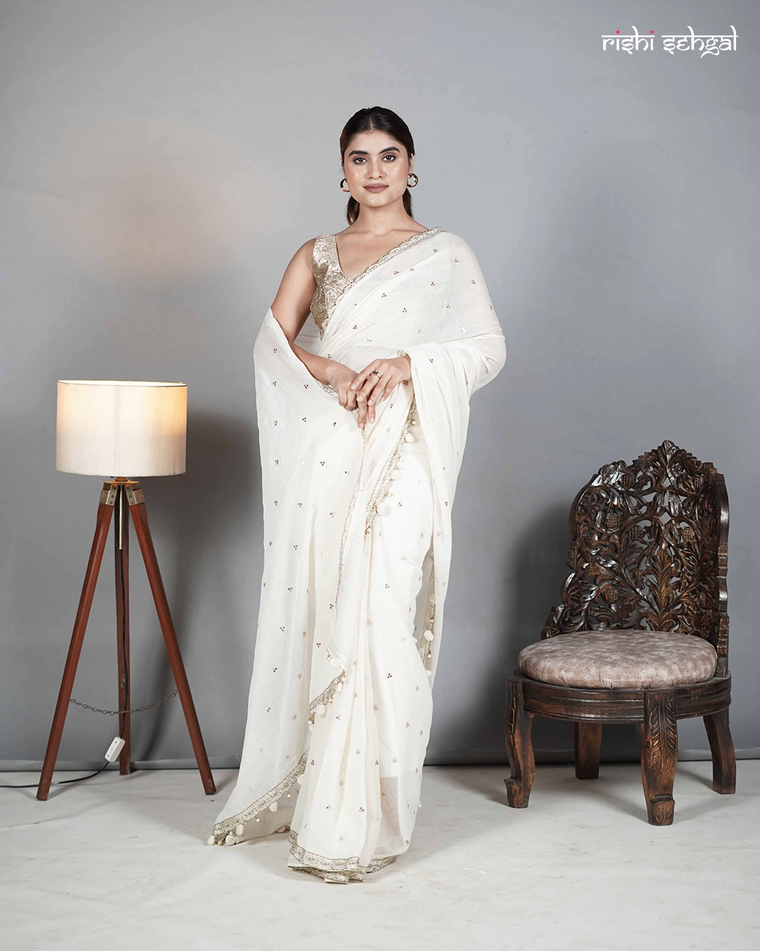 Radiating timeless charm, this ivory cotton saree is a vision of effortless grace and subtle sparkle. Adorned with delicate mirror work scattered across the drape, it captures light beautifully, adding a soft shimmer to its serene hue. The handcrafted border is finished with intricate detailing and playful tassels along the palla, bringing a touch of artisanal finesse to the ensemble. Lightweight and breathable, this saree is perfect for daytime festivities, intimate celebrations, and elegant evening gatherings where simplicity meets sophistication.