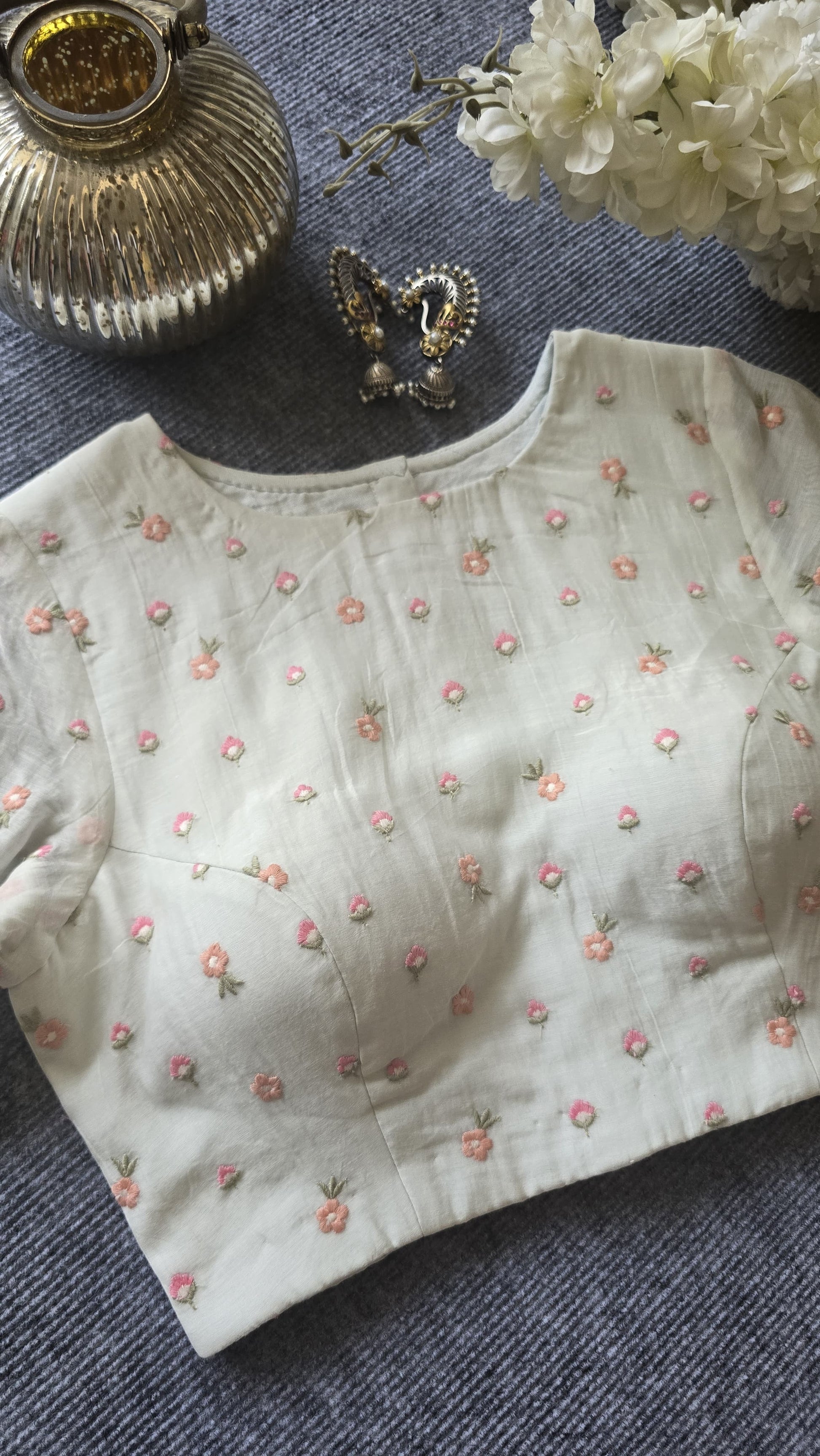 Meticulously crafted cotton embroidered blouse featuring intricate threadwork that elevates traditional design to wearable art. The thoughtfully padded construction provides structure and comfort, while the convenient back opening ensures easy wear. Each stitch represents the pinnacle of artisanal craftsmanship, making this Threaded Treasure a sophisticated addition to your ethnic wardrobe.